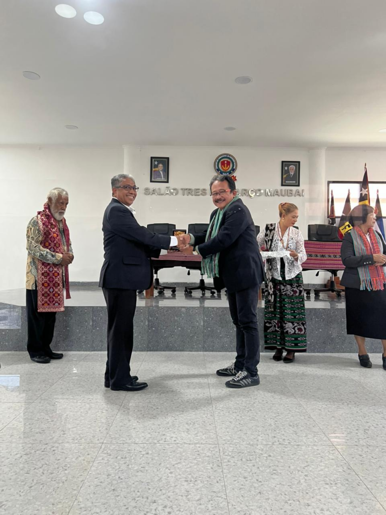 Rangkaian kegiatan juga diwarnai dengan pertukaran cinderamata budaya antara kedua negara. Timor-Leste menyerahkan kain tais sebagai simbol identitas dan kehormatan budaya bangsa, sedangkan delegasi Universitas Udayana menyerahkan kain songket Bali sebagai simbol persahabatan, penghormatan, dan hubungan antarbangsa yang semakin erat. Momen tersebut memperkuat pesan bahwa kolaborasi akademik tidak hanya membangun ilmu pengetahuan, tetapi juga menjembatani persahabatan, saling percaya, dan kerja sama masa depan yang lebih luas.