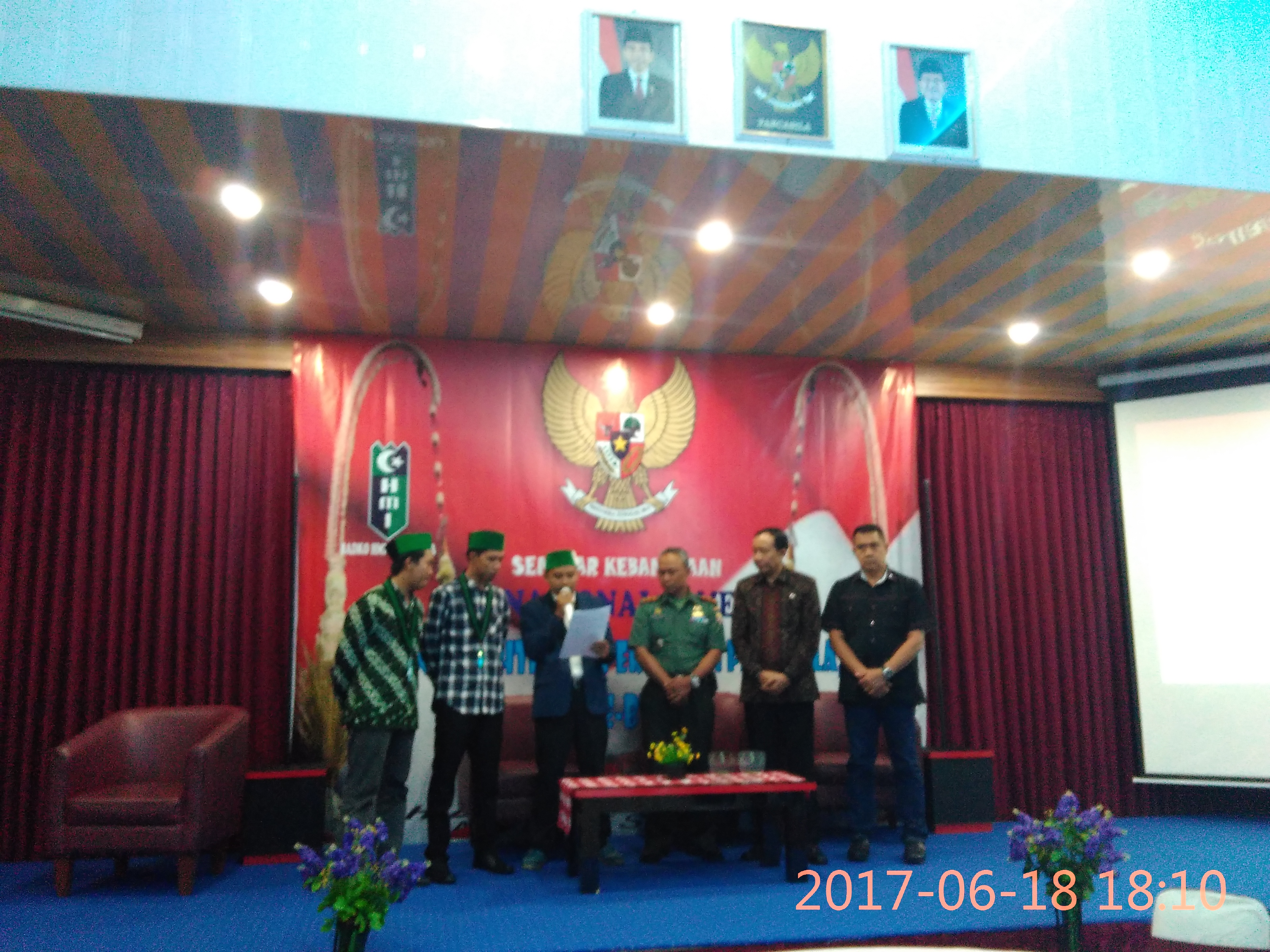 After dialogue with the three speakers; Major General (Punawirawan) Wishnu Bawa Tanaya, Major Kap. Suprapto, S.Ag, and Drs.H.Sayfudin Zaini, M.Pdi., secretary of Badko HMI Bali Nusra accompanied by the three speakers, read the declaration of rejection of HTI organization containing 1) Collectively maintaining the unity of Republic of Indonesia, NKRI on the basis of Pancasila and the 1945 Constitution, 2) Badko HMI Bali Nusra supports the government in dissolving HTI, 3) Badko HMI Bali Nusra rejects mass organizations that opposed to Pancasila and 1945 Constitution, 4) Banning HMI members in Badko Bali Nusra area to follow HTI’s activities 5) For HMI Badko Bali Nusra members who follow all activities of HTI will be recommended to be revoked of their membership, 6) To appeal and invite all Indonesian citizens, especially in Bali to maintain and care for pluralism and universal values and NKRI. (sobhita)