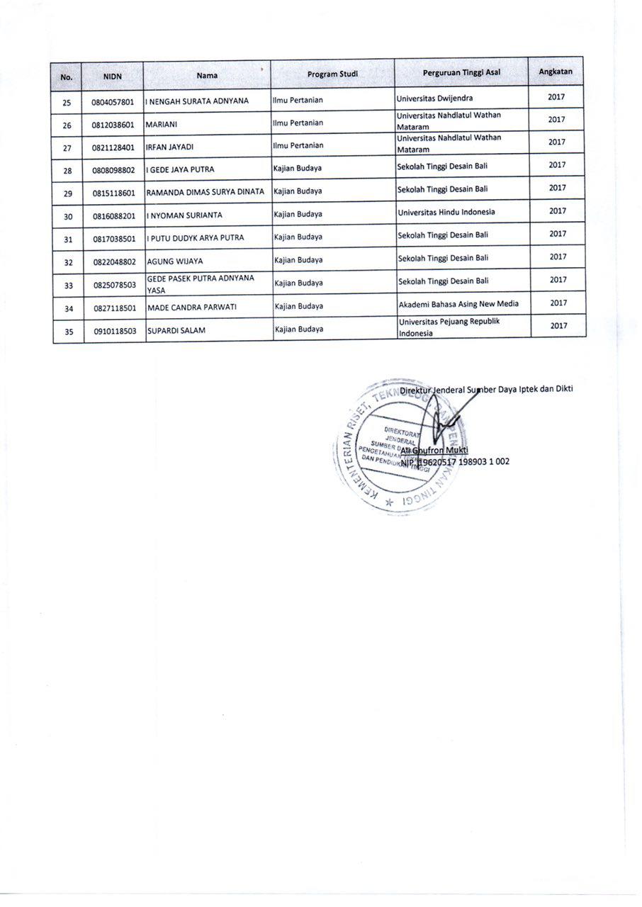 Dosen penerima bantuan dana beasiswa 1 smt S3 DN angkatan 2017-UNUD