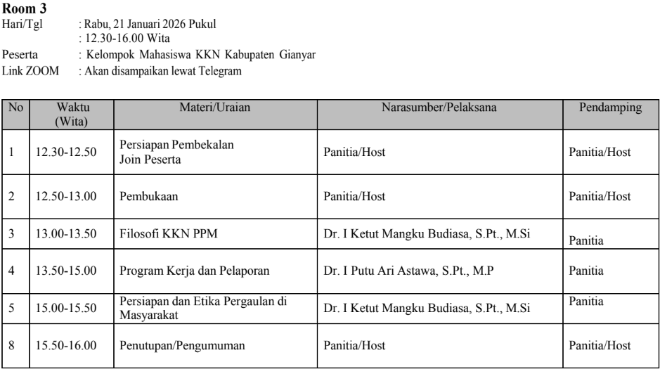 Selengkapnya Informasi Perubahan Waktu dan Jadwal Pembekalan KKN-PPM Periode XXXII Tahun 2026
