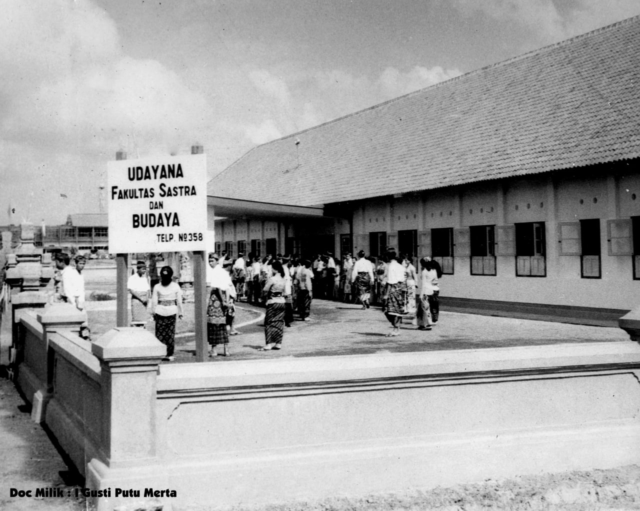 Cikal bakal Universitas Udayana (Unud) adalah Fakultas Sastra Udayana cabang Universitas Airlangga yang diresmikan oleh P. J. M. Presiden Republik Indonesia Ir. Soekarno, dibuka oleh J. M. Menteri P.P dan K. Prof. DR. Prijono pada tanggal 29 September 1958 sebagaimana tertulis pada Prasasti di Fakultas Sastra Jalan Nias Denpasar.